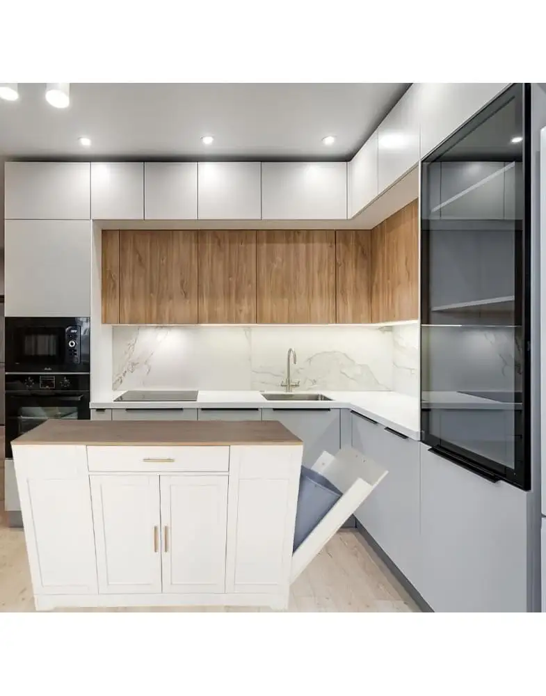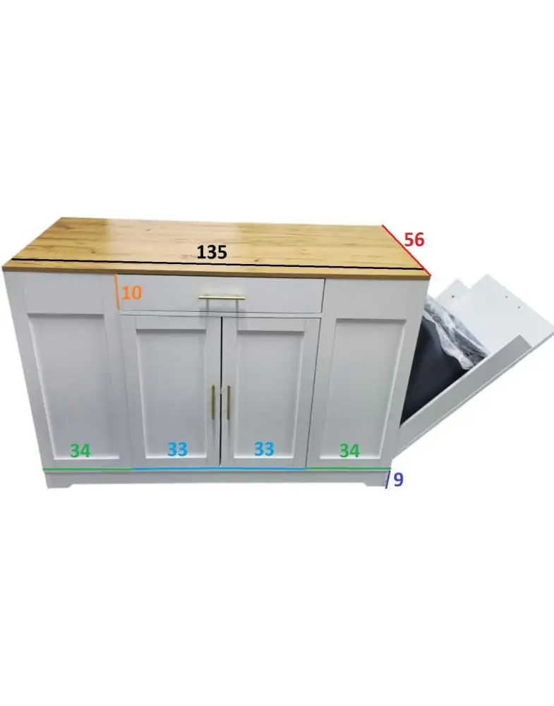 פתרון מושלם עבור: ארון מטבח עם פח אשפה מובנה, ארונית MDF למטבח, אי למטבח עם משטח עמיד לשריטות, ארון אחסון לבן.