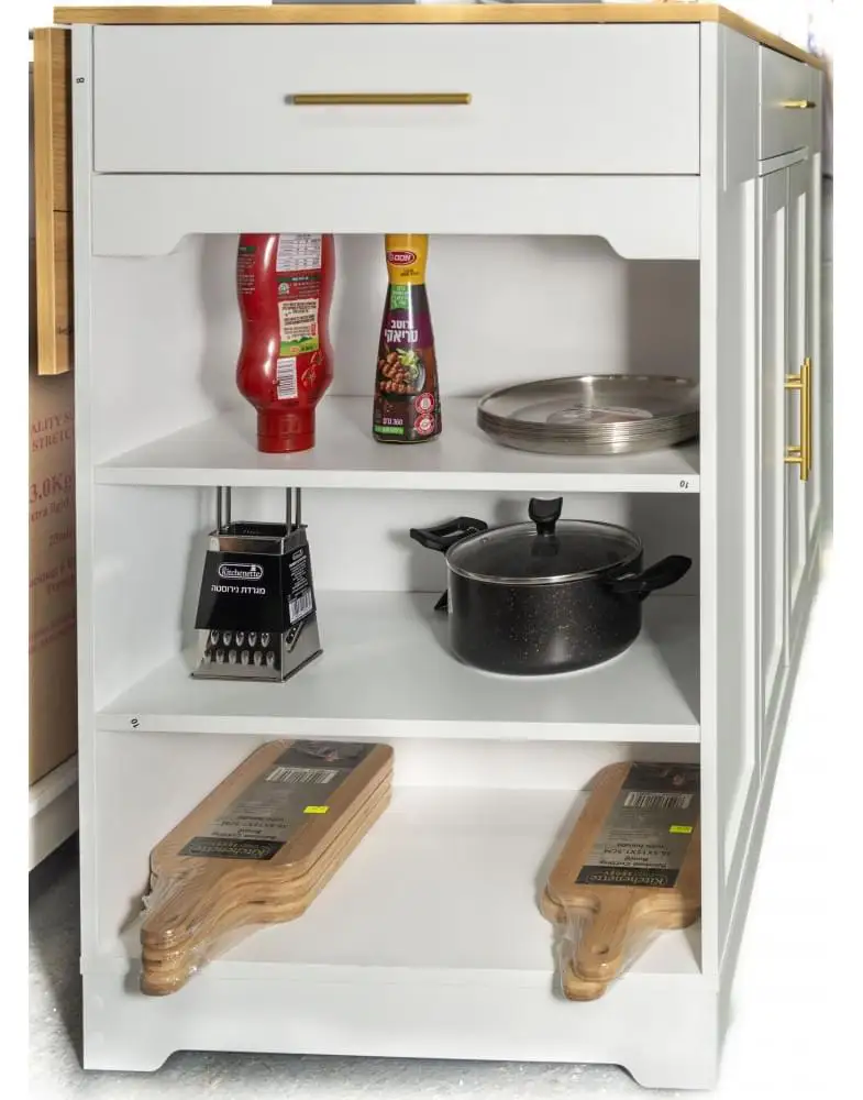 מגירה מרכזית עליונה לאחסון סכו”ם וכלי מטבח קטנים.