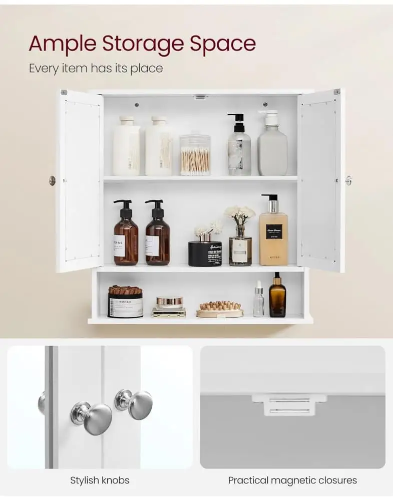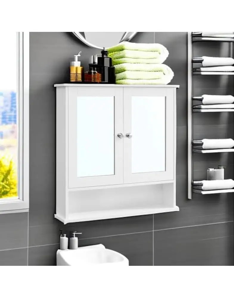 ארון תלייה דו-דלתי עם מראות לחדר האמבטיה המעניק פתרון אלגנטי לאחסון.