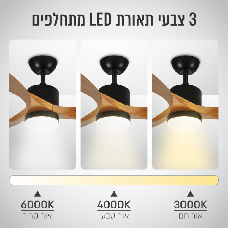 תאורה: LED מובנה 3 גוונים (חם, אור יום, לבן קריר)