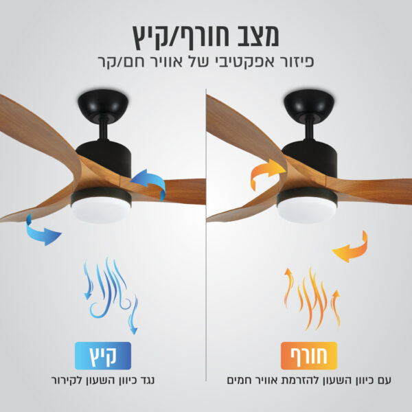 מצב חורף מאפשר לשנות את כיוון סיבוב הכנפיים, וכך לפזר בצורה יעילה אוויר חם שמצטבר בתקרה כלפי מטה. שימוש במצב זה לצד אמצעי חימום נוספים מסייע לחימום אחיד ויעיל יותר של החלל.