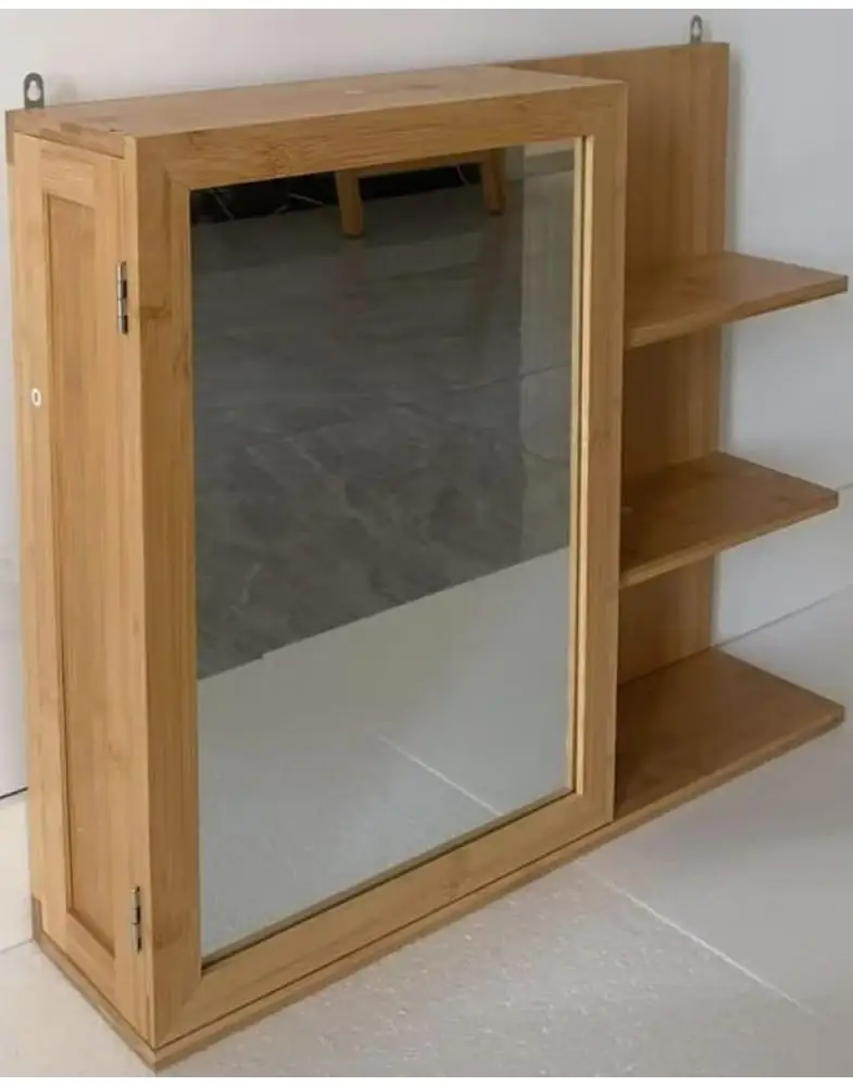 הארונית מצוידת במראה מרווחת במסגרת במבוק, גדולה מספיק לבדיקת המראה לפני היציאה.