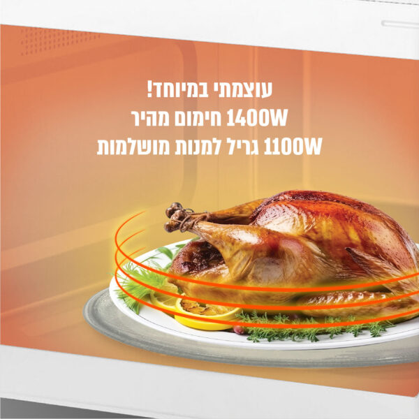 עוצמה גבוהה במיוחד עם הספק מיקרוגל של 1400 וואט והספק גריל של 1100 וואט מבטיחה חימום מהיר, בישול אחיד ותוצאות מדויקות בכל שימוש