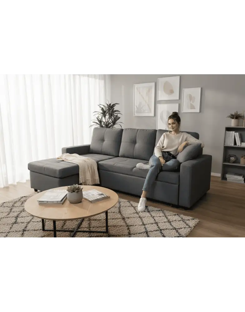 ספה פינתית נפתחת עם תא אחסון – נוחות חכמה לסלון מודרני.